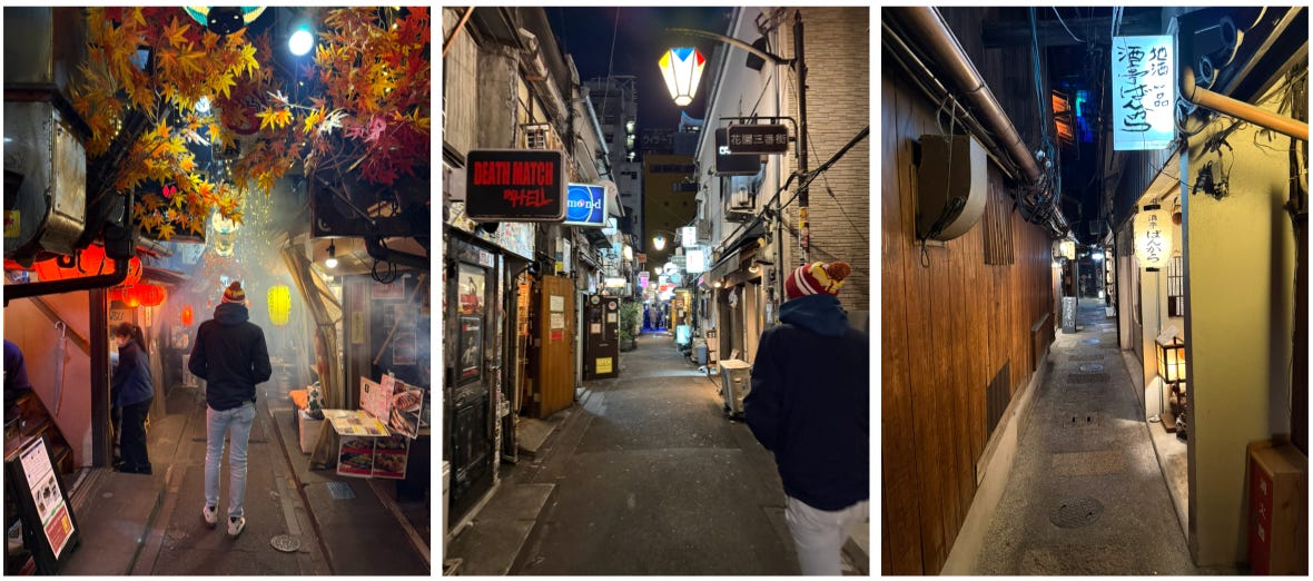 Walking is my preferred way to explore a city: it’s the surest path to discovery and delight. Hidden near commercial districts and railway stations, yokochō (literally “side streets”) are warrens of narrow alleyways along which tiny bars and restaurants cluster. In these warrens, establishments serve only five to ten customers on footprints often less than 15 square meters. This smallness is the point: it lowers overhead, encourages idiosyncrasy, and helps small operators survive.