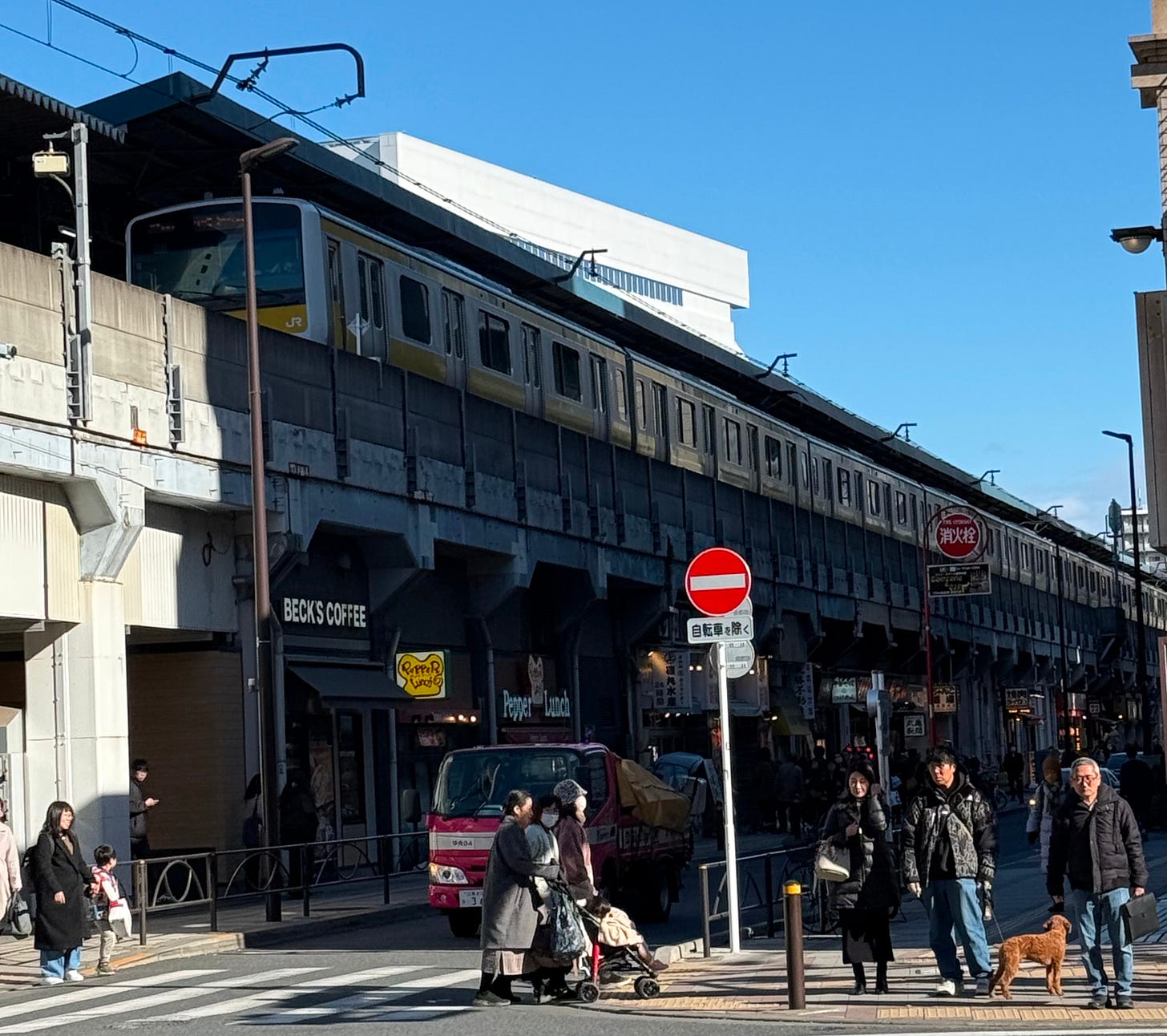 This efficiency extends to spaces other cities consider unusable: the dead zones beneath elevated railroads and highways. In the US, “under the tracks” is usually a warning. In Tokyo, it’s an opportunity: cafés, restaurants, and shops nestle beneath the concrete ribs of rail lines and expressways, turning what Jane Jacobs called “border vacuums” into active corridors. At Ryōgoku Station, an undertrack café provided a welcome respite from the cold while we waited to enter the nearby Kokugikan Arena for the sumo championship. Even highways are integrated this way: along the Ginza Corridor of the Tokyo Expressway, rental fees from shops below help finance the road above. By treating these infrastructural leftovers as opportunities, Tokyo creates connectivity where other cities destroy it.